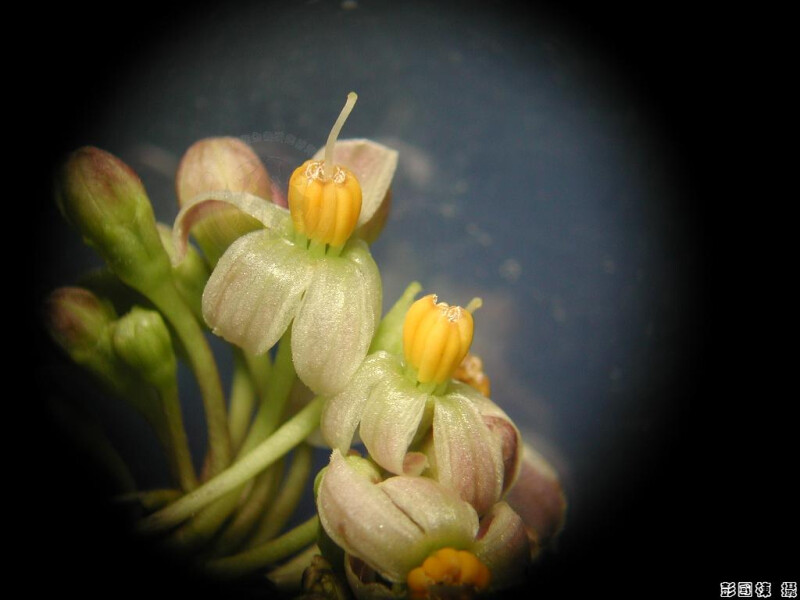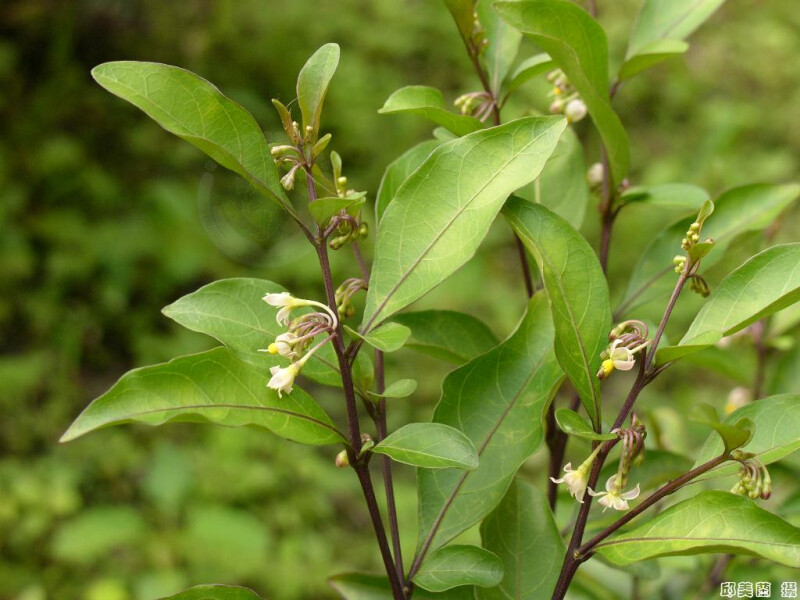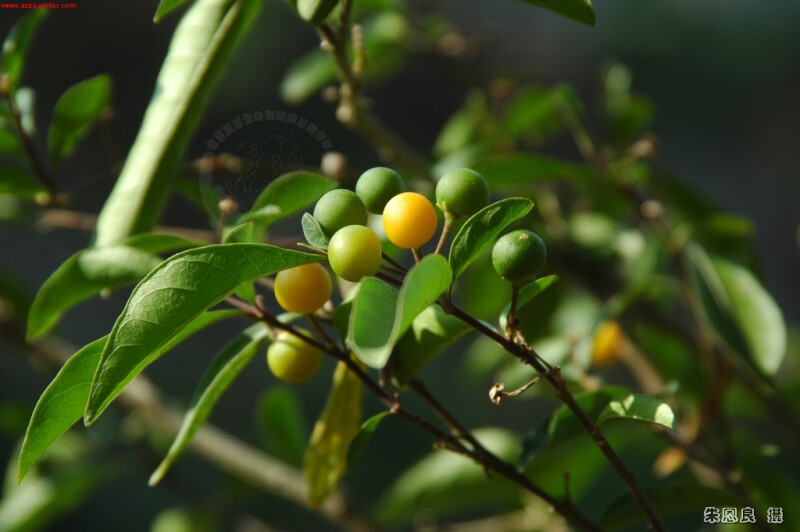 灌木,無毛。葉一大一小著生於同一節上,全緣,大葉橢圓形至長橢圓形,長4-9 cm,寬2-3.5 cm,小葉近圓形至寬橢圓形,長1.5-3 cm,寬1.2-2.2 cm。總狀花序蝎尾狀近繖形排列;與葉相對著生,萼片中裂,於裂片下方處縮小;花瓣白色,長3.5-4.5 mm。果橘黃色,徑寬7-12 mm。 (楊遠波、劉和義、施炳霖、呂勝由 1999)