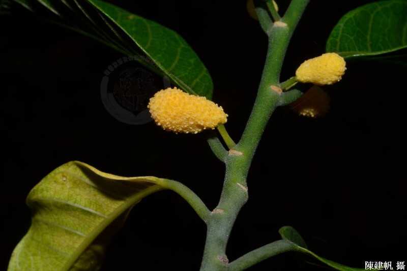 葉長橢圓形,全緣,光滑。雄花序長1 cm;雌花序球形。聚合果小。蘭嶼天池一帶。 (楊遠波、劉和義、呂勝由 1997)