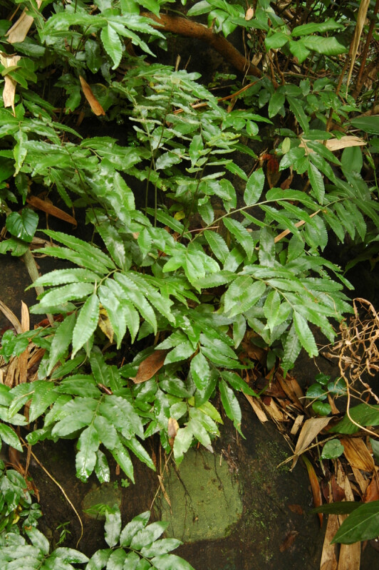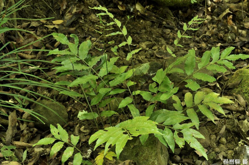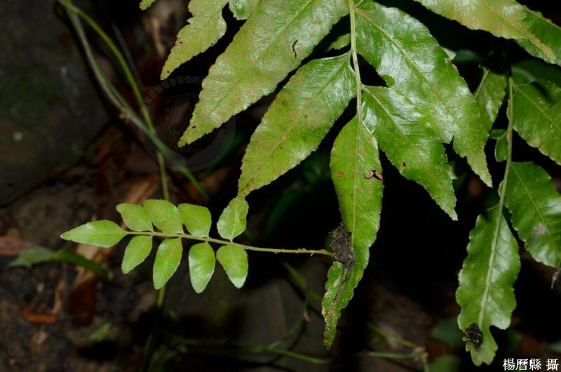 根莖短匍匐,粗約1cm,葉近生,鱗片聚集於莖頂及葉柄基部,葉柄草桿色,多少泛紅。葉軸近軸面有兩條深溝。 分佈在低海拔茂密森林中,主要在曾文水庫一帶,著生於石上。 (郭城孟 1997)