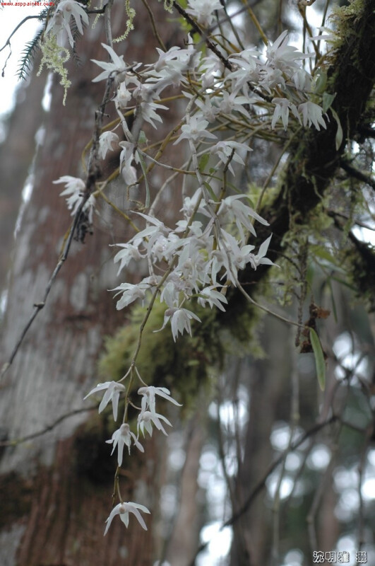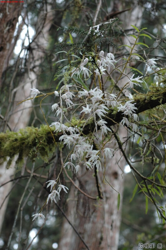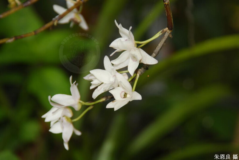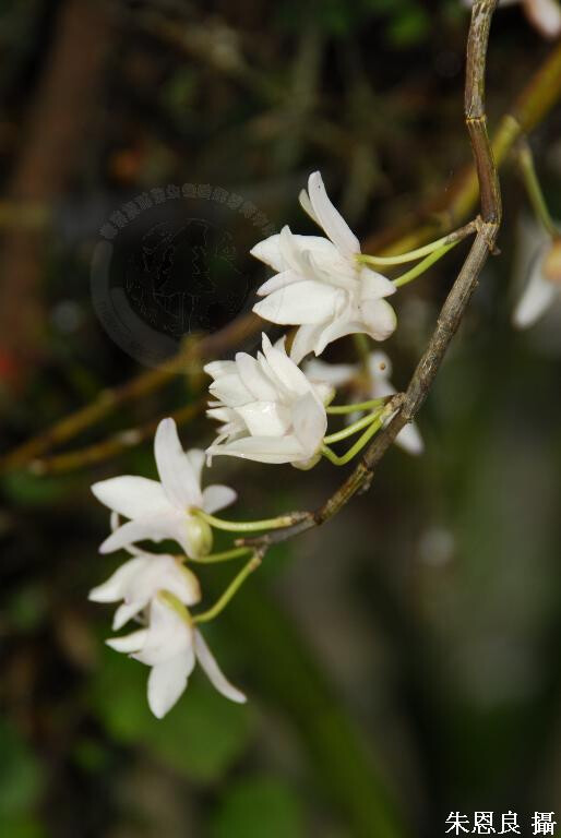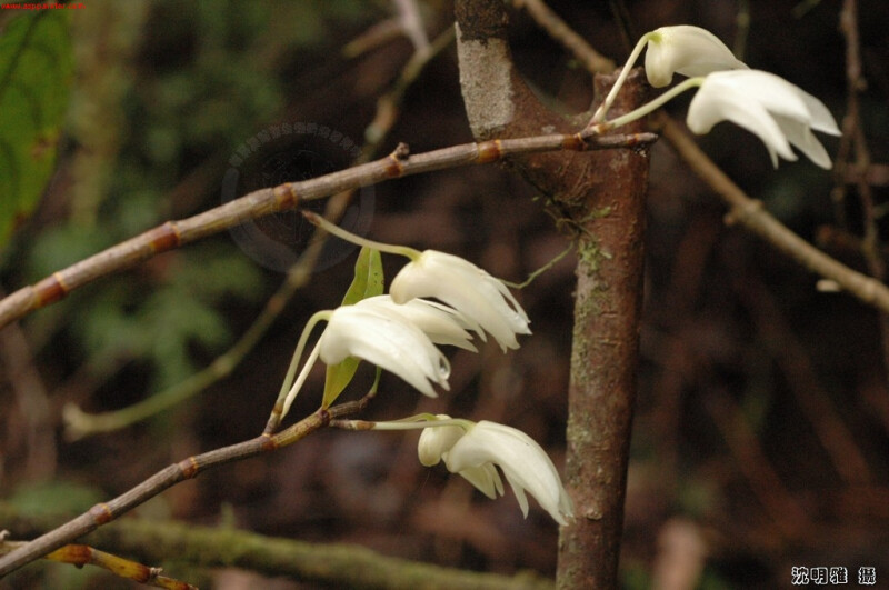 附生或地生。莖叢生,纖細,下垂,常分枝。葉線形,長5-10 cm,寬5 mm。花1或2朵,著生在莖部較下面的節上,不從著葉處發生。花雪白,半張。 (林讚標 2001)