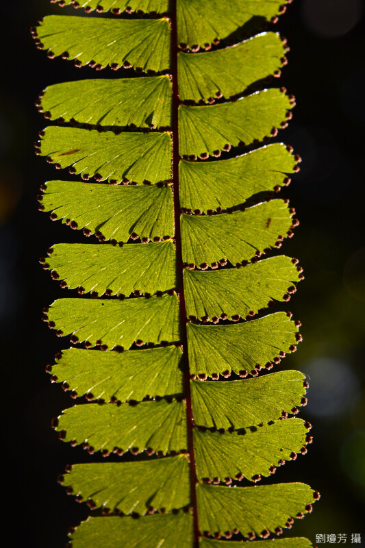 一回羽狀複葉,葉軸近軸面及葉片密被毛,囊群蓋被毛。羽軸頂端延長,末端有不定芽。 (郭城孟 1997)