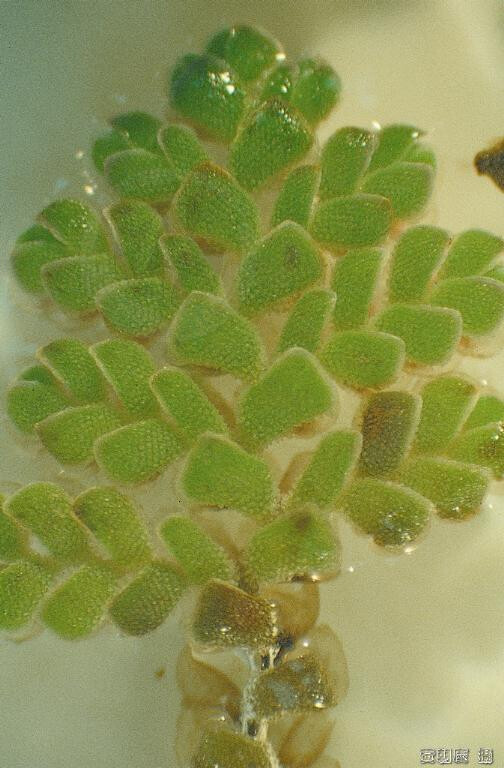 科特徵-  漂浮性,葉二列互生,葉片裂成上下二瓣,上裂片浮水,可行光合作用,內有空腔;下裂片膜質,沈水。葉片含多種色素,秋冬之際溫度降低,葉綠素被破壞,植株呈紅色。植物體具根。孢子囊果單性,成對生長。 種特徵- 植株呈三角形,不超過1cm寬,葉至多0.1cm長。 (郭城孟 1997)