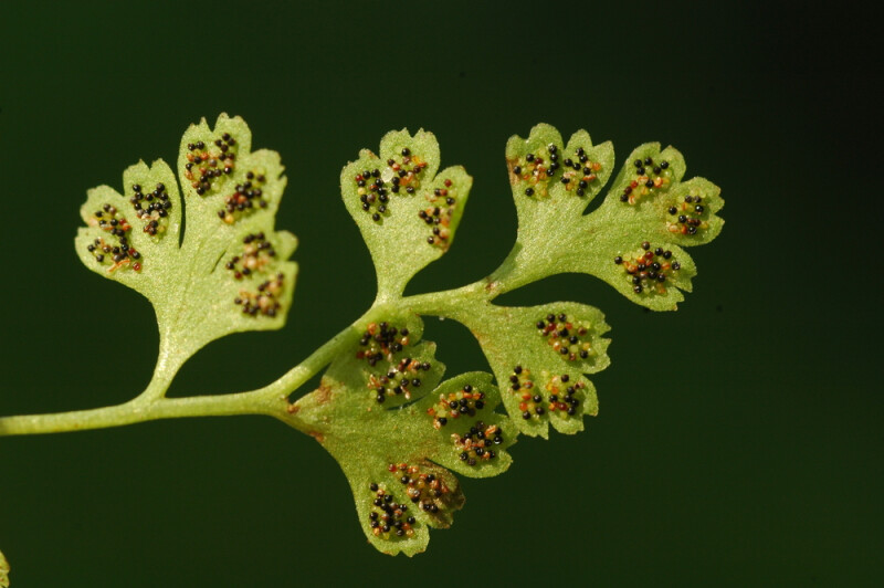 屬特徵- 植株小,叢生,二至三回羽裂,葉膜質,脈二叉,不具孢膜。 種特徵- 根莖短,葉柄長3-7cm,暗紫色,具光澤。葉5-8cm長,二至三回羽裂,最末裂片小,孢子囊群位在脈上,幾乎佔滿裂片。 (郭城孟 1997)