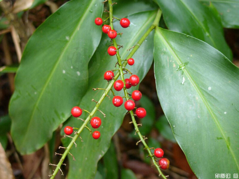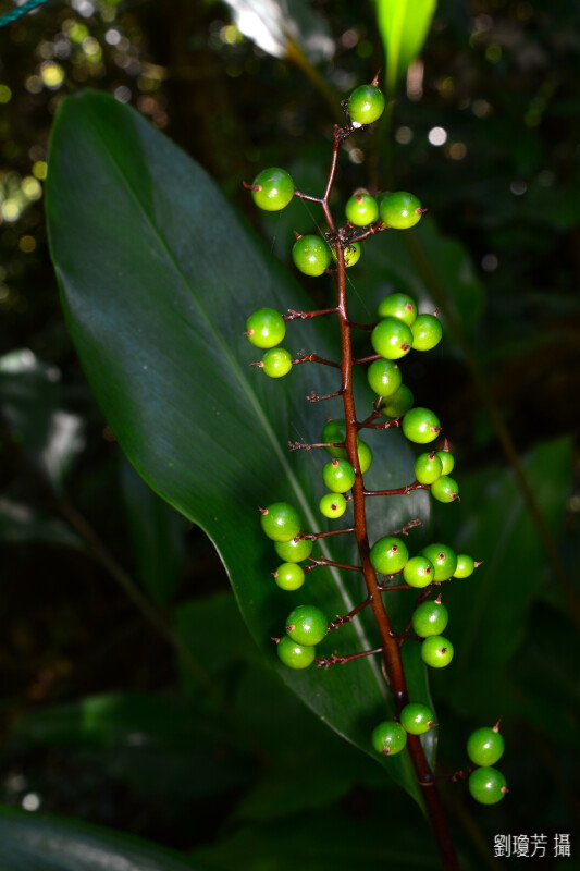 葉光滑無毛,長橢圓形或披針形。圓錐花序,下方分枝較上方分枝略長,每分枝具3-7朵花;小苞片長橢圓形,長約8 mm。漿果狀,球形。 (楊遠波、劉和義、林讚標 2001)