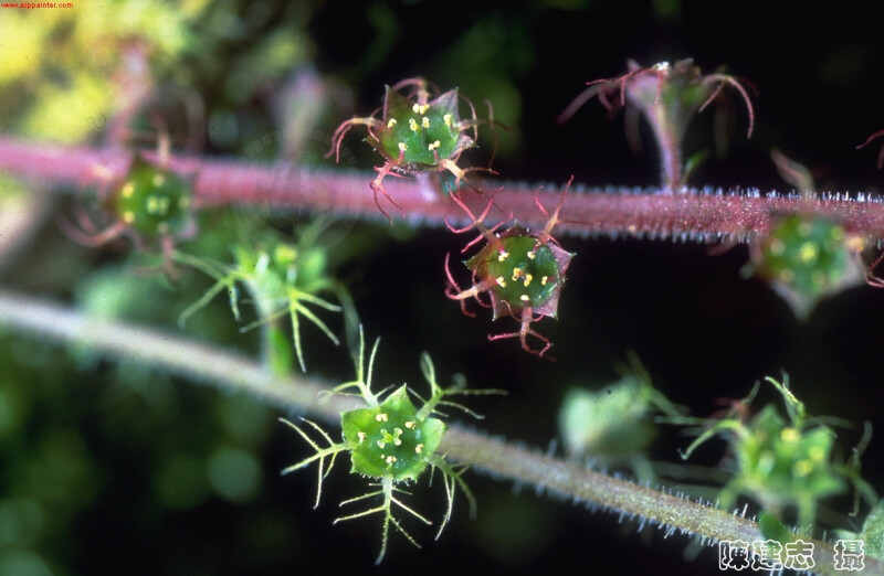 屬特徵- 具匍匐根狀莖的多年生草本。葉基生,具長柄,基部心形,不規則齒緣至小裂片狀;托葉乾膜質。朝向一側的總狀花序,頂生;花小;萼鐘形,5裂;花瓣5,3裂或羽裂,有時不裂或缺;雄蕊5或10;子房1室。蒴果。 種特徵- 具粗毛的草本。葉紙質,卵狀心形或三角形,長5-7 cm,寬3-4 cm,先端銳尖至漸尖,心基;托葉褐色。開花莖長20-30 cm,密披褐色毛;花具短柄;花柱2;柱頭2裂。 (劉和義、楊遠波、呂勝由、施炳霖 1998)