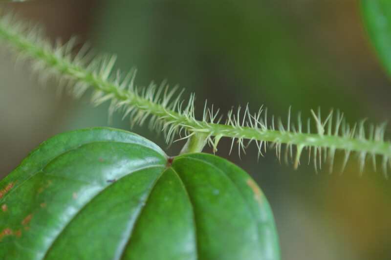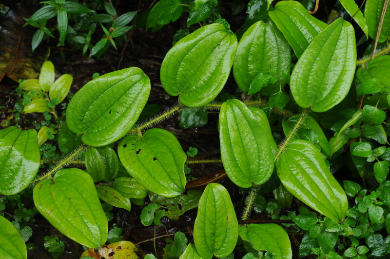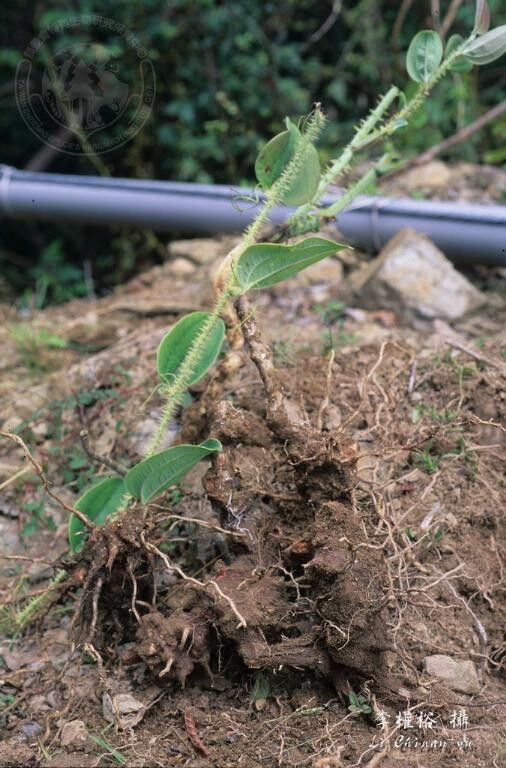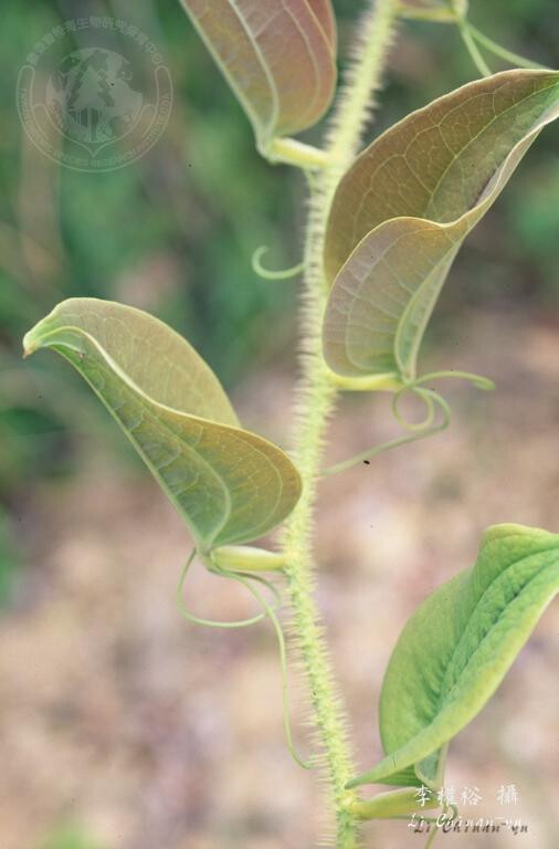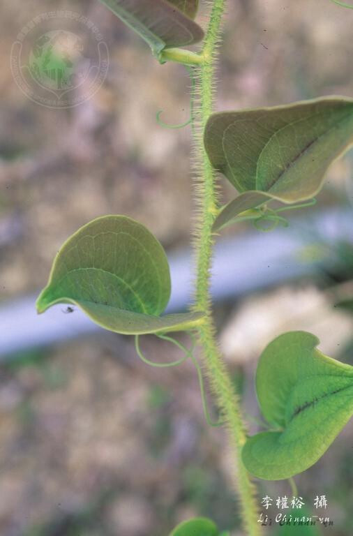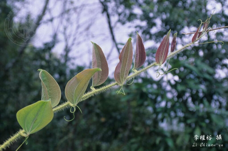 莖及枝密生細長直刺。葉橢圓至卵狀橢圓形,紙質,下表面粉白;葉柄鞘為柄長1/2。果深藍色。 (楊遠波、劉和義、林讚標 2001)