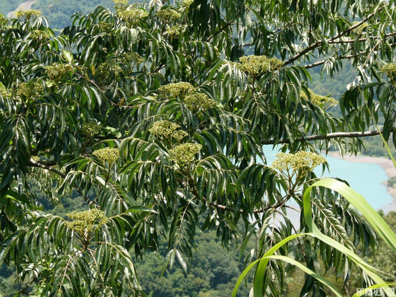 喬木。奇數羽狀複葉,幼時呈豬肝色,羽軸豬肝色或略淡;成熟小葉革質,長橢圓披針形,長3-15 cm,寬2-3.5 cm,漸尖至尾狀漸尖,通常刺狀鋸齒緣,稀全緣。花序初具鏽色毛,漸變無毛。 (劉和義、楊遠波、呂勝由、施炳霖 1998)