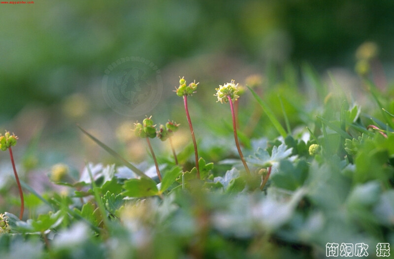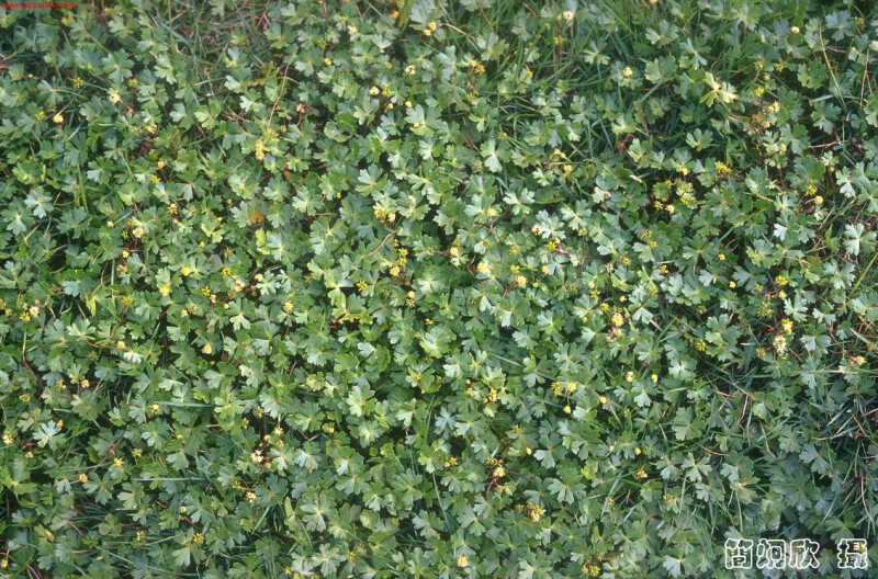 葉圓形,寬0.5-3 cm,3-5深掌裂,掌裂幾乎到底,裂片菱形至狹菱形,每一裂片3-5淺裂,上面無毛或疏被毛,背面被長反曲毛;葉柄無毛,長0.5-3 cm。繖形花序約10朵花,花綠白色。離果寬約1.5 mm。 (劉和義、楊遠波、呂勝由、施炳霖 1998)