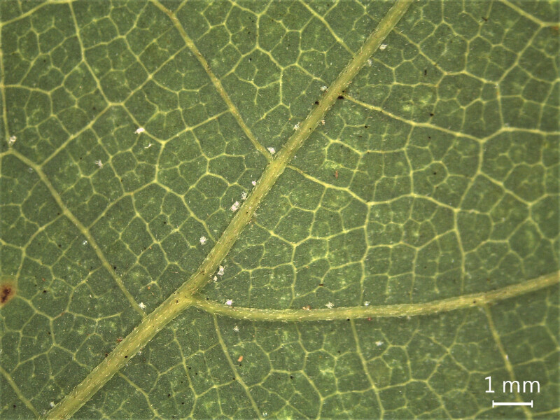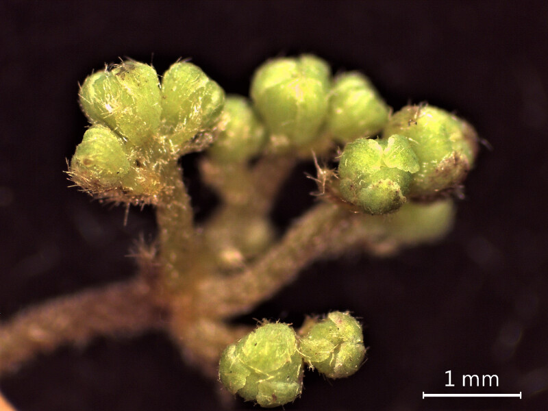葉紙質,寬三角狀卵形,基部略心形或平截,葉脈基出3-5條,側脈2-3對,有葉柄。花小,集合成圓錐花序;花萼片外表有柔毛,卵狀橢圓形。 (楊遠波、劉和義、呂勝由 1997)
