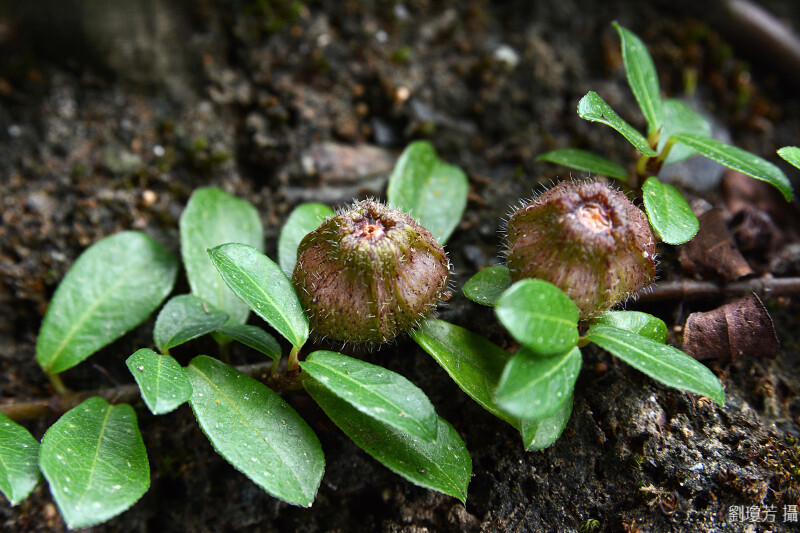 匍匐灌木。節間處常發生不定根。葉厚紙質,倒卵狀橢圓形,兩面疏被毛,長0.6-3 cm。雌雄異株。隱花果被毛,寬0.6-1 cm,殆無柄。 (楊遠波、劉和義、呂勝由 1997)