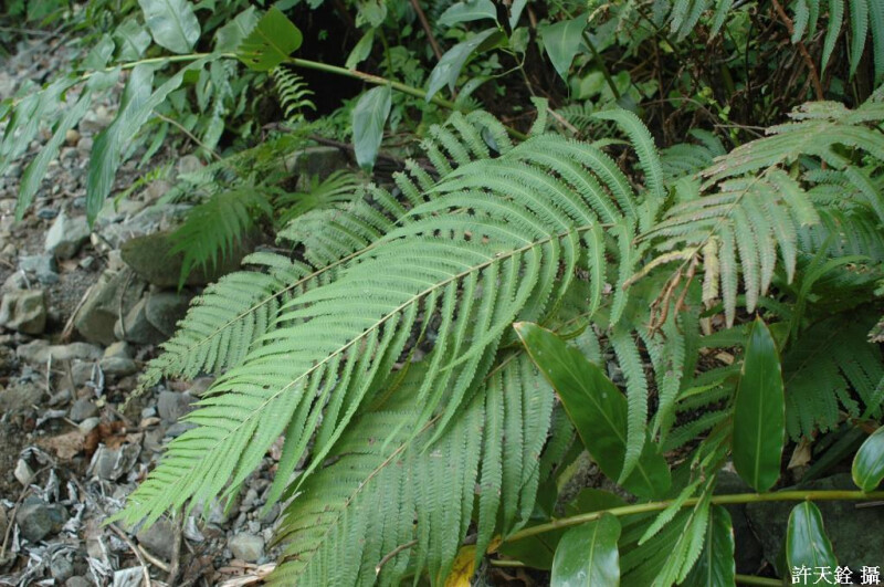 叢生,葉長,可達150cm,下羽片驟縮成鱗片狀,柄極短,具小毛蕨脈形,連脈3-5條。 (郭城孟 1997)