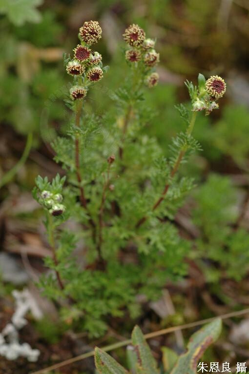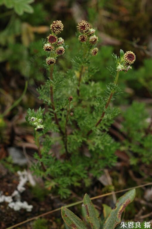 植株高10-20 cm,具走莖。葉1-2.5 ?e 0.5-1.5 cm,二回羽裂。比例上顯得特別大的頭花(直徑0.7-0.9 cm,約0.5 cm高)為玉山艾最易辨視的特徵。頭花總狀排列,總梗細,長0.5-2 cm。總花托多少被毛。 (楊遠波、劉和義、施炳霖、呂勝由 1999)