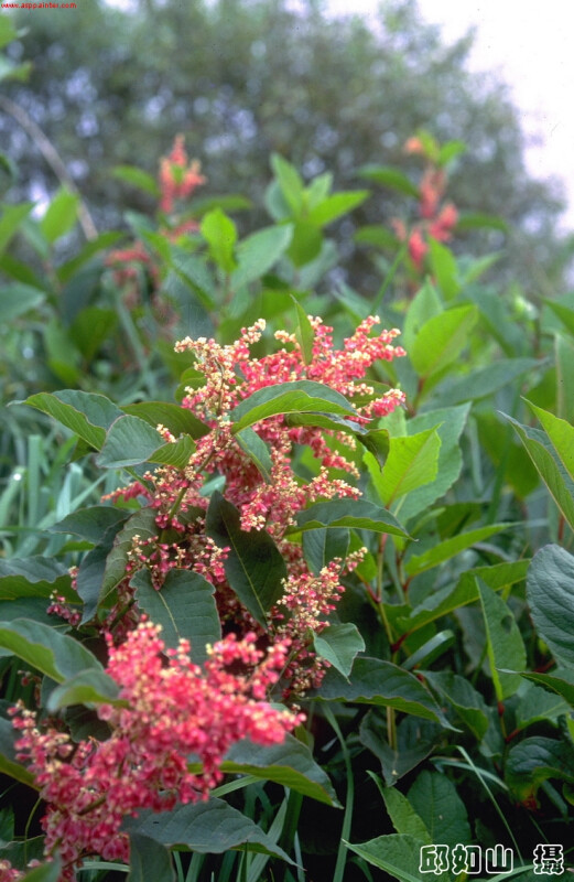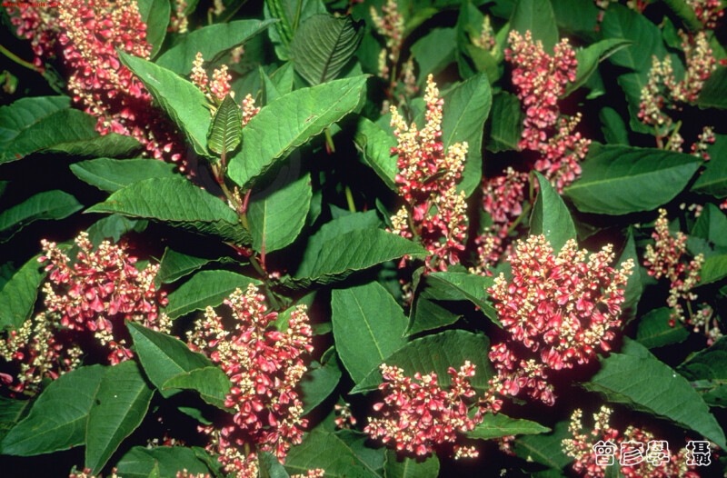 多年生草本植物,莖直立硬挺,常呈紅色,具斑點。葉卵形至橢圓形,葉柄常為紅色。花序圓錐狀,花乳白色,花後呈紅色乾膜質。瘦果呈紅色,具三翼。 (楊遠波、劉和義、呂勝由 1997; 黃俊源 2019)