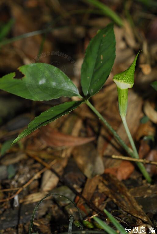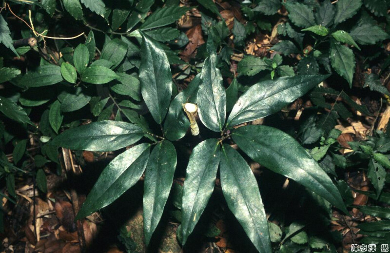 假莖高13-25 cm。葉2至3片,葉柄短於假莖;小葉3,或5枚呈鳥足狀排列,先端銳尖至漸尖,具突尖頭,中間小葉柄長1-2.5 cm,兩側小葉柄長3-10 mm,花序軸向前端漸變細。 (楊遠波、劉和義、林讚標 2001)
