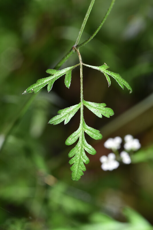 一年生草本,高30-75 cm。二回羽狀複葉,小葉長橢圓形至披針形,常羽裂,長1-10 mm,寬2-15 mm。離果長1.5-4 mm。 (劉和義、楊遠波、呂勝由、施炳霖 1998)