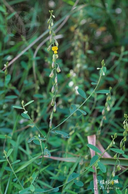 草本,被毛。單葉,倒披針形,長2-4 cm,寬0.5-1.5 cm,上面無毛,背面有毛,先端鈍形;托葉甚小。萼片5深裂長4-6 cm。花瓣黃色。莢果圓筒狀,無毛,長7-10 mm;種子6-12 粒。 (劉和義、楊遠波、呂勝由、施炳霖 1998)