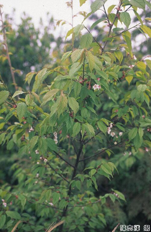 落葉喬木。葉膜質,長橢圓狀卵形,先端突尖狀漸尖,細鋸齒緣,下表面脈上密被毛;托葉線狀披針形。花數朵簇生,白色;梗與花萼被毛。 (劉和義、楊遠波、呂勝由、施炳霖 1998)