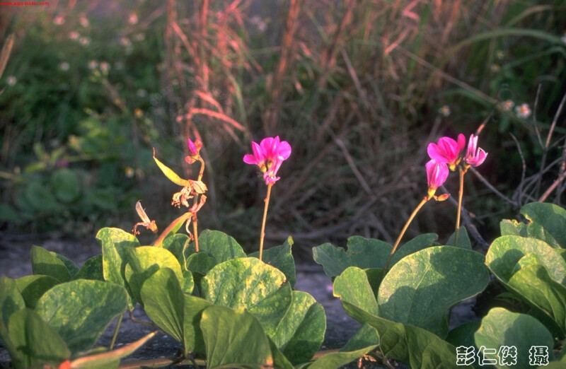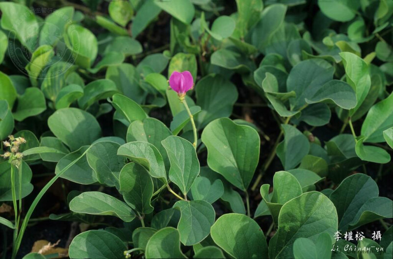 多年生草本。頂小葉寬卵形,長7-9 cm,先端凹形,基部楔形。花紫色。莢果長7-9 cm。 (劉和義、楊遠波、呂勝由、施炳霖 1998)