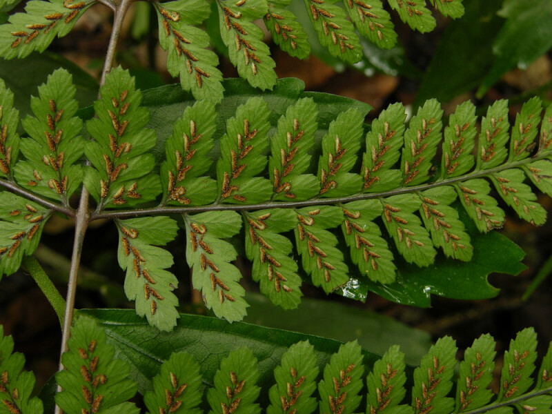 羽軸或小羽軸近軸面具針刺,羽軸近軸面具褐色硬短刺,罕見於小羽軸,孢膜長條形,中間羽片的中間小羽片具有約1.2mm長的柄,葉草質,羽片柄 2-5 mm長,小羽片頂端鈍,羽片上的小羽片會重疊。 (郭城孟 1997)