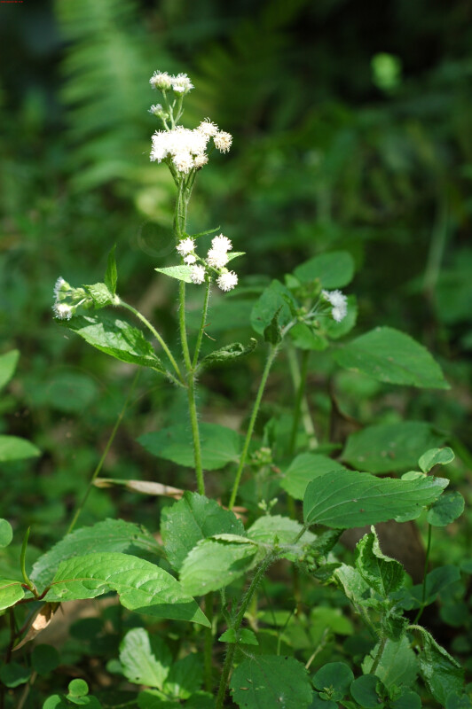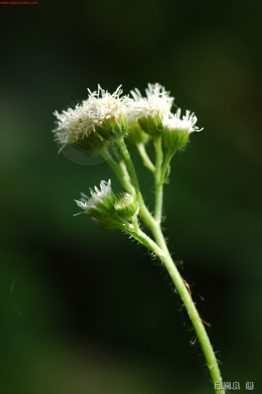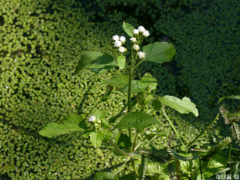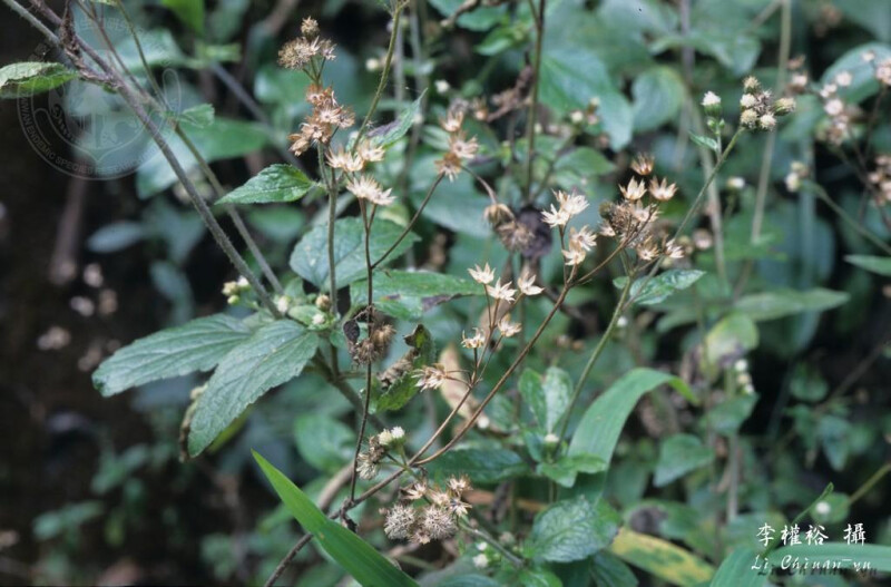 一年生草本;高30-60 cm,被剛毛,全株具濃香氣。葉卵形,具長柄,葉基截形或圓形,稀為心形,葉緣小鋸齒狀。頭花具60-75朵小花。瘦果黑色,長橢圓形;冠毛5,鱗片狀,邊緣鋸齒,先端芒刺狀。 (楊遠波、劉和義、施炳霖、呂勝由 1999)