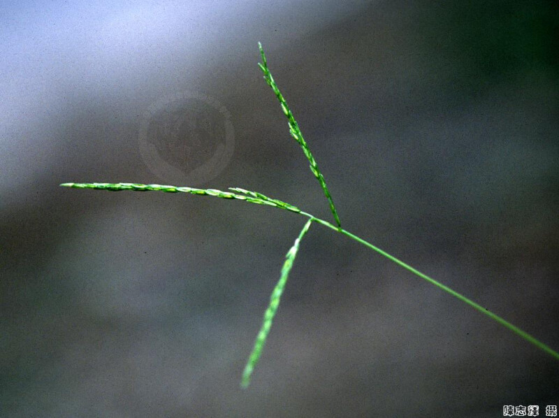 稈斜倚;葉片長約4.5 cm,寬6-7 mm,密被短毛。總狀花序1-5枚,長約5 cm。無柄小穗長約4.5 mm,較穗軸之節間為長;外穎龍骨矽質粗糙;上位外稃具短芒,芒長約4 mm。 (楊遠波、劉和義、郭長生、陳志輝 2001)