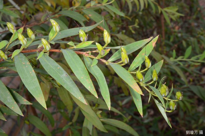 灌木;莖具4縱翼或4稜。葉狹橢圓形或狹長橢圓形,長1.9-7 cm,寬0.5-1.6 cm,網脈極不明顯,僅具灰色腺點,基部楔形。特有種。 (楊遠波、劉和義、呂勝由 1997)