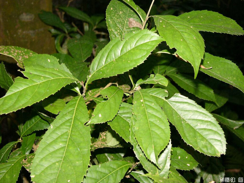 喬木;幼枝被銹色毛。葉薄革質或紙質,葉脈下表面有銹色毛,疏鋸齒緣。花序有銹色毛。果球形。 (楊遠波、劉和義、呂勝由 1997)