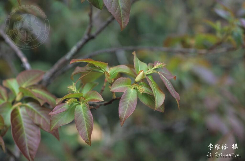 小枝光滑。葉紙質或略厚,卵形。長6-8 cm,先端銳尖或略漸尖,基部圓、鈍或近心形,下表面脈上被毛,側脈6-8對。 (楊遠波、劉和義、施炳霖、呂勝由 1999)