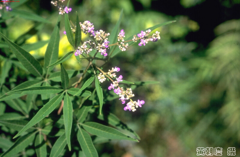 灌木,枝方形,被灰毛。3-7小葉;小葉長卵形、披針形或狹披針形,3-11 cm長,0.5-3 cm寬,全緣或先端鋸齒緣,下表面密被短伏毛。花序密被毛。花萼外側被毛;花冠藍紫色,兩面被毛;雄蕊基部被毛;子房無毛。果倒錐狀。 (楊遠波、劉和義、施炳霖、呂勝由 1999)