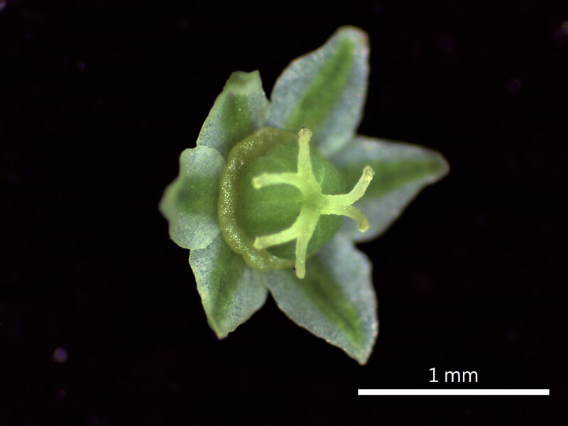 草本;莖具稜。苞葉線狀披針形,長約0.9 mm。葉膜質,卵形或倒卵形至闊橢圓形,長8-12 mm,寬8-10 mm,先端與基部銳尖至圓或鈍;托葉披針形。雄花被片5,倒卵形;腺體三角形;雄蕊5。雌花被片5,披針形。果扁球形;果梗長約6 mm。 (劉和義、楊遠波、呂勝由、施炳霖 1998)