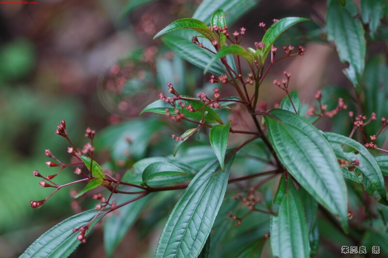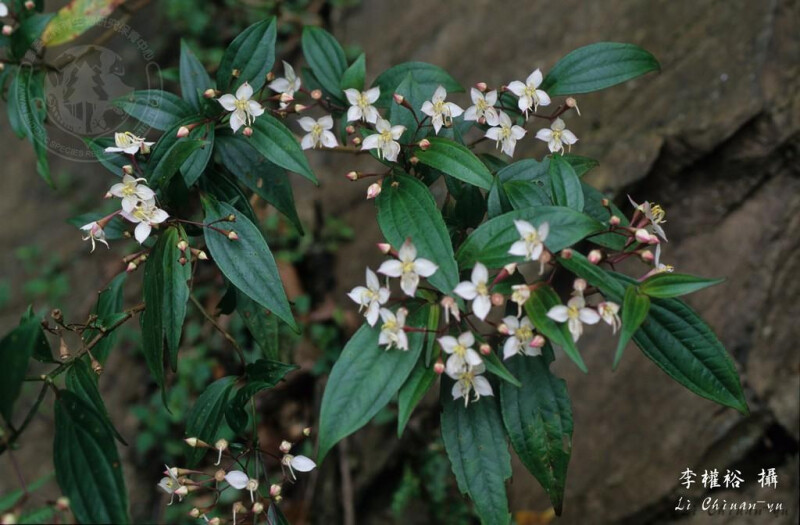 小灌木。葉披針形、橢圓或卵形,先端漸尖至鈍,基部平截,小細鋸齒緣,具2離基脈。花梗光滑或近光滑。 (劉和義、楊遠波、呂勝由、施炳霖 1998)