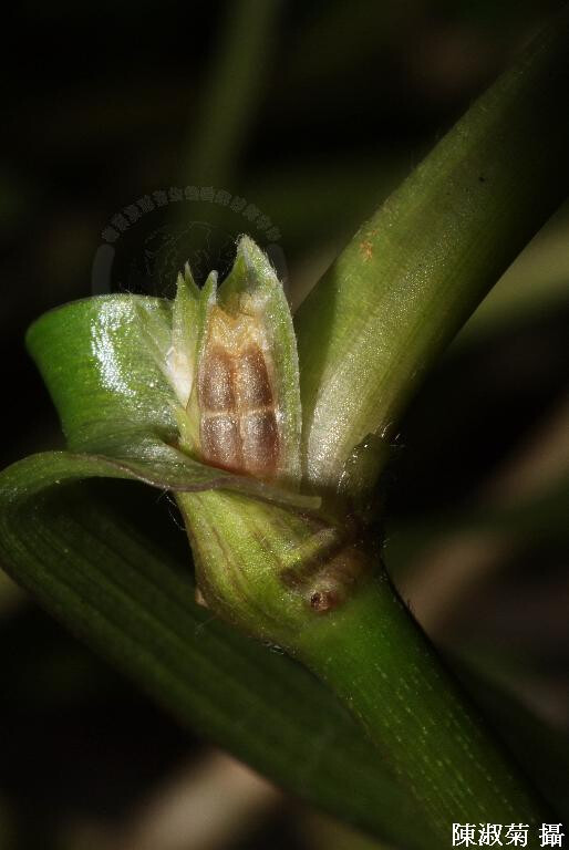 植物體光滑無毛;莖匍匐。葉線形或帶形,長2-8 cm,寬0.2-0.4 cm;葉鞘筒形,具緣毛。 (王震哲、彭鏡毅 2001)