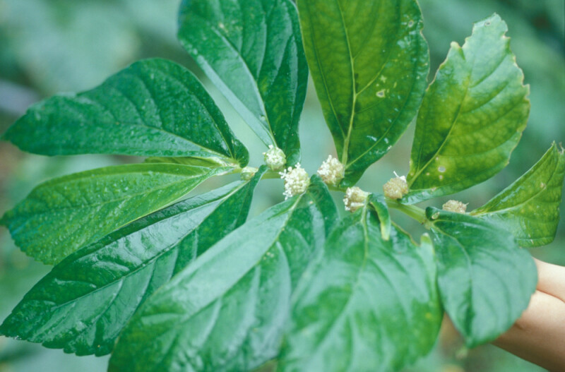莖肥厚多汁的草本,揉之有類似薄荷的芳香,莖四方形,有稜,淡綠色。葉膜質至草質,光滑無毛,大形鐘乳體長達0.7 mm,下表面無鐘乳體,不對稱的橢圓至長橢圓形,長10-25 cm,寬3-8 cm,寬側的基部呈半心形的耳狀構造,鈍齒緣至細鋸齒緣,窄側全緣或具有1-2不明顯的齒。雄花序具3-15 mm長的柄;雌花序徑達25 x 16 mm,無或近無柄。瘦果具8條縱肋。台灣產於蘭嶼及綠島。 (施炳霖 1997)