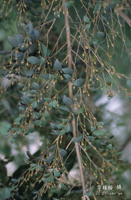 喬木,小枝纖細。葉無毛,長橢圓形,寬1.5-2.5 cm,兩端鈍至銳尖,全緣或幼枝上者具少數齒;葉柄具星狀毛。花單性。果密布星狀毛,卵狀。 (劉和義、楊遠波、呂勝由、施炳霖 1998)