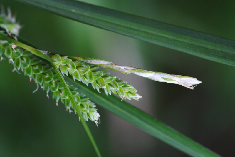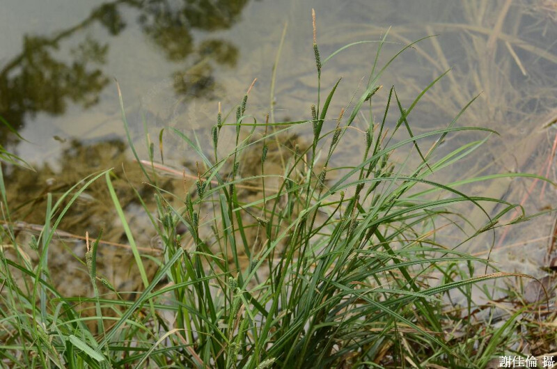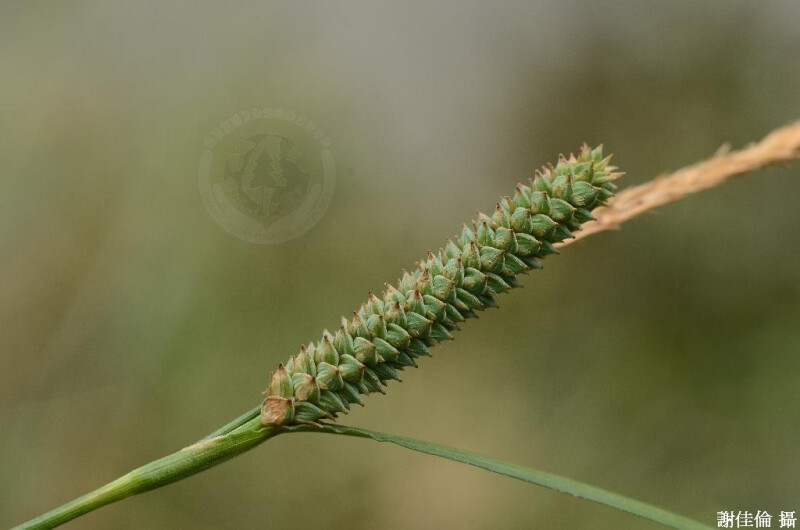 根莖斜生。稈近叢生,高20-40 cm,橫截面三角形。葉基生或莖生,寬2-5 mm。花序總狀;葉狀總苞具鞘;頂端雄小穗線形,長1-4.5 cm;側生小穗雌性或先端具少數雄花,圓筒形,長1-4 cm;雌鱗片橢圓形,長1.75-2 mm,頂端不具芒;柱頭3。果囊長2-3 mm,被腺狀乳突,近橢圓形;瘦果長1.5-1.75 mm,橢圓形,橫截面壓扁狀三角形。 (梁慧舟 2001)