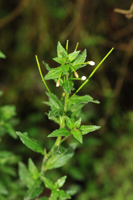 莖單一或具少數的分枝。葉卵至長橢圓形或披針形或在下部的倒卵形,長2-7 cm,通常銳尖地細鋸齒緣。花序有微粗毛及腺毛。花近直立;花瓣通常長5-8 mm,白至淡紅或紫色。蒴果長1.5-7 cm,具疏毛或近無毛。 (劉和義、楊遠波、呂勝由、施炳霖 1998)