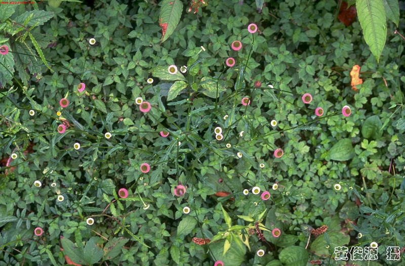 屬特徵:一年生或多年生草本。葉互生。輻射狀頭花單一,或少數而呈鬆散的繖房狀排列,頭花具長總梗。總苞半球形。舌狀花花冠短,雌性,3-5層,白或略呈紅色。心花黃色。瘦果稍扁平,長卵形。無冠毛。 種特徵:本種形態變化極大。莖高5-70 cm,被疏毛,不分枝或有斜升的分枝,頭花頂生。基生葉長橢圓形、匙形或圓形,6-10 ?e 5.5 cm,全緣、鋸齒緣或琴狀羽裂,裂片不對稱,葉兩面被毛。莖葉較少,半抱莖;葉柄有翅。頭花頂生,總梗長6-12 cm。頭花直徑約0.7 cm。瘦果先端漸縮,環生腺體。 (楊遠波、劉和義、施炳霖、呂勝由 1999)