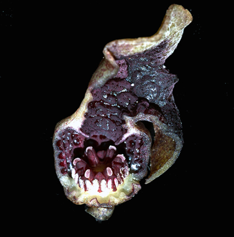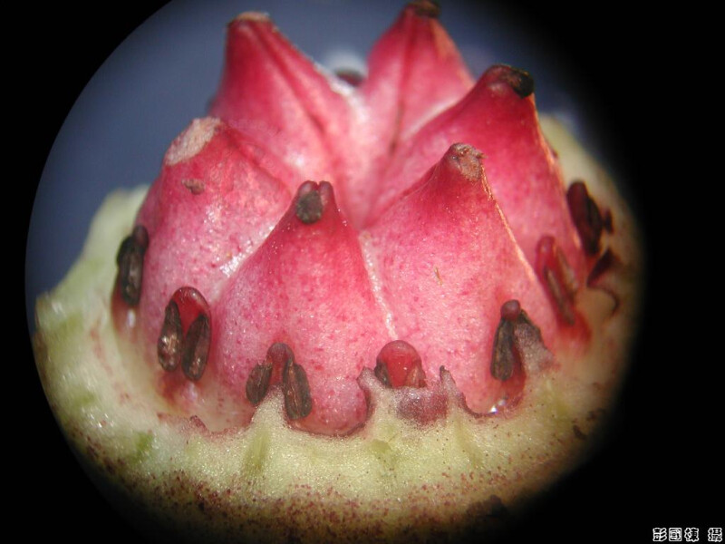地下莖無毛。葉三角形,長13-19.5 cm,上表面有白點,下表面疏生小腺點,花萼筒內面有突起之網紋,萼片與萼筒間有大的附屬物,萼片上表面粗糙且有許多短腺體。 (楊遠波、劉和義、呂勝由 1997)