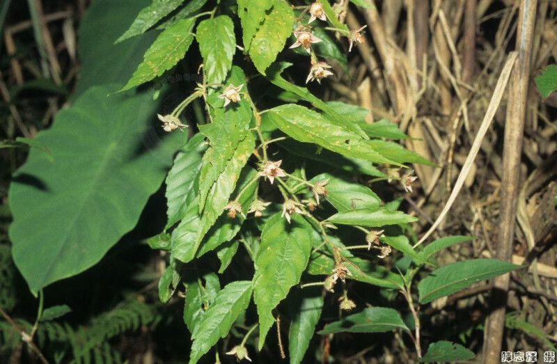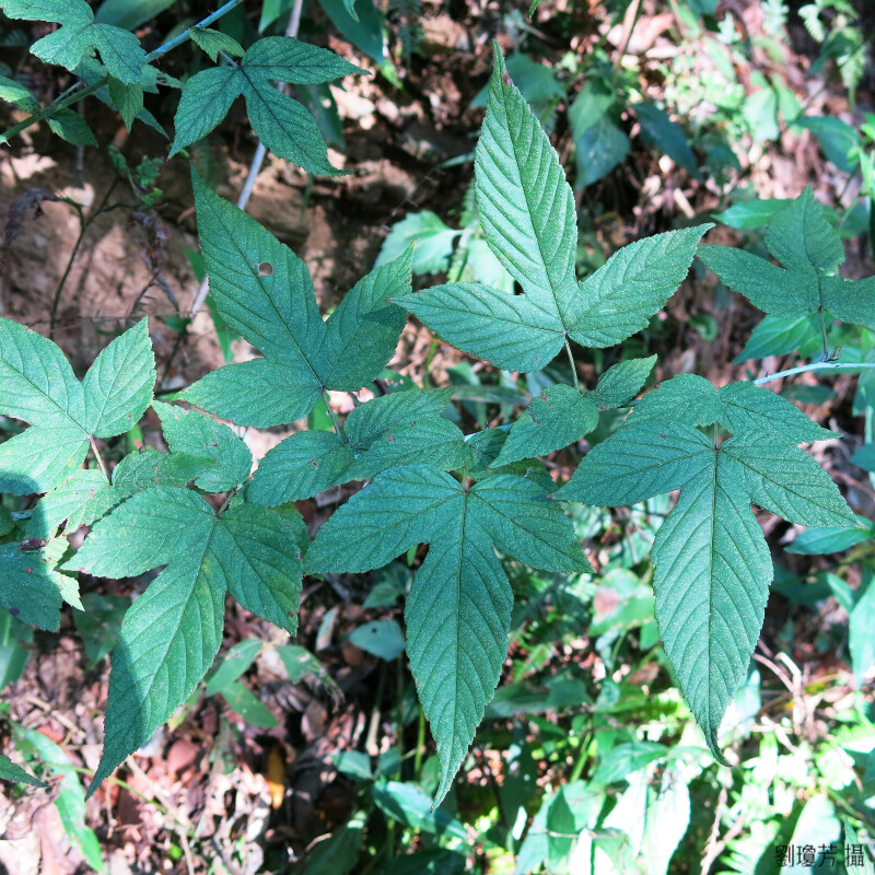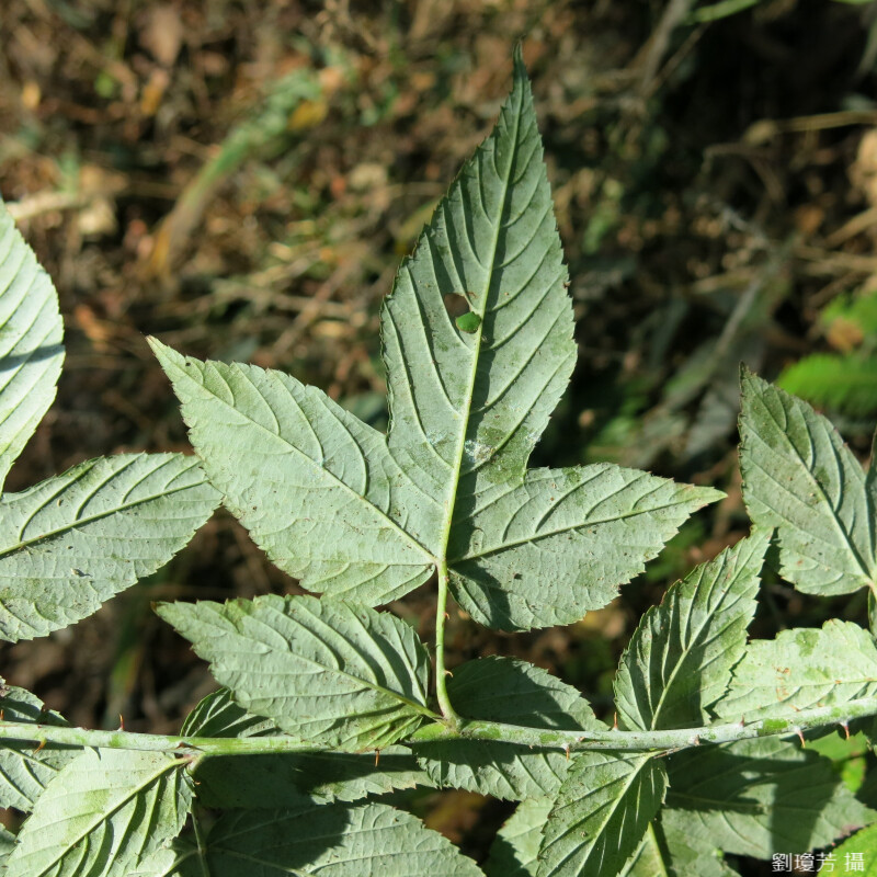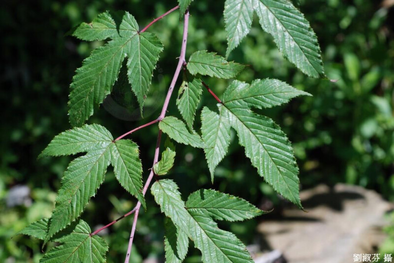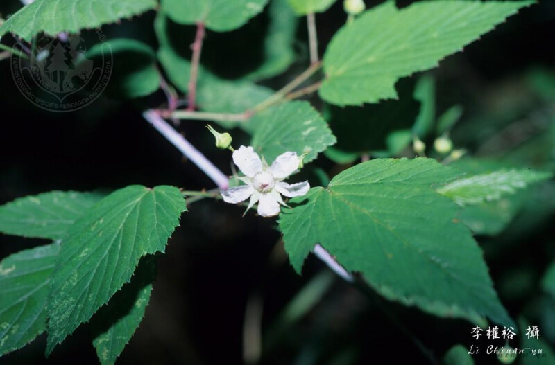 攀緣落葉灌木;莖暗紫色,光滑;刺少,長5 mm。單葉,卵形至卵狀長橢圓形,不裂至3深裂,不規則鋸齒或重鋸齒緣,兩面光滑,下表面常灰色或白色;托葉線狀披針形,長5-10 mm。花數朵成總狀花序;萼片三角狀卵形至披針形。 (劉和義、楊遠波、呂勝由、施炳霖 1998)