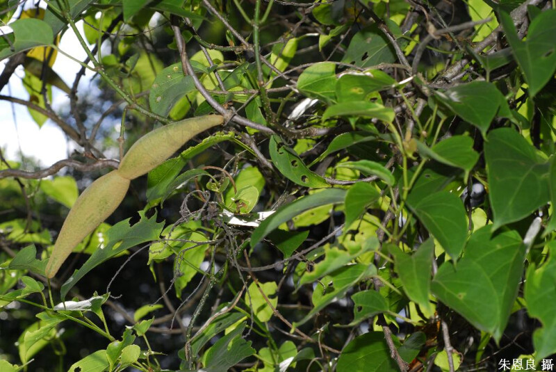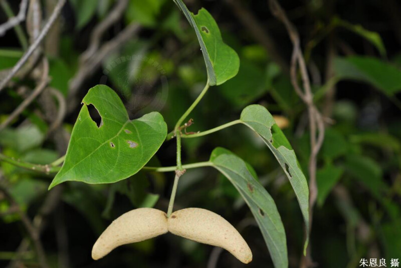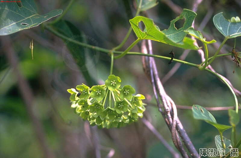 纏繞灌木,光滑。葉對生,膜質至略革質。繖形花序,具總梗。花綠色;萼片三角形;花冠裂片卵狀長橢圓形;副花冠具5星狀裂片。蓇葖果單生。葉卵形,長8-15 cm,先端銳或漸尖,基部截或心形。 (楊遠波、劉和義、施炳霖、呂勝由 1999)