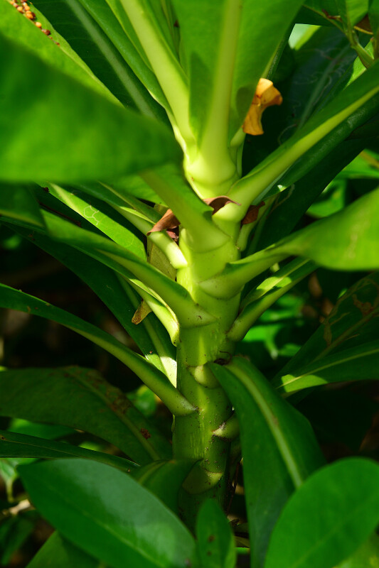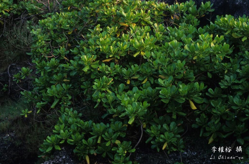 直立灌木。葉倒披針形至匙形,長6-25 cm,寬4-10 cm,全緣、略缺刻緣或齒緣。花白色。 (楊遠波、劉和義、施炳霖、呂勝由 1999)