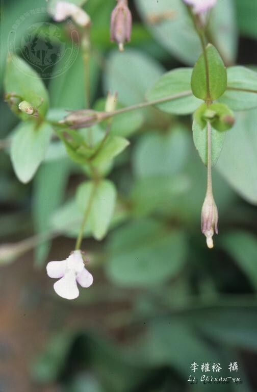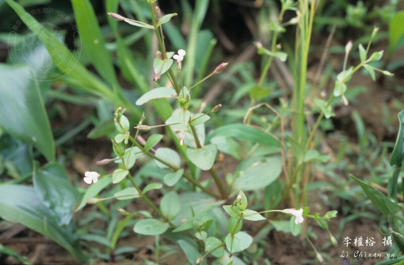 一年生草本。葉無柄,卵狀長橢圓至橢圓形,長7-25 mm,掌狀3-5脈,全緣,無毛。花單一,腋生,花梗較其鄰近葉長;花冠白色或淺粉紅色;雄蕊4。蒴果約略與萼片等長,長3-4.5 mm。 (楊遠波、劉和義、施炳霖、呂勝由 1999)
