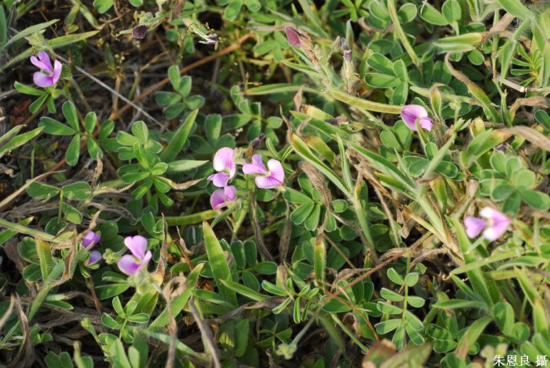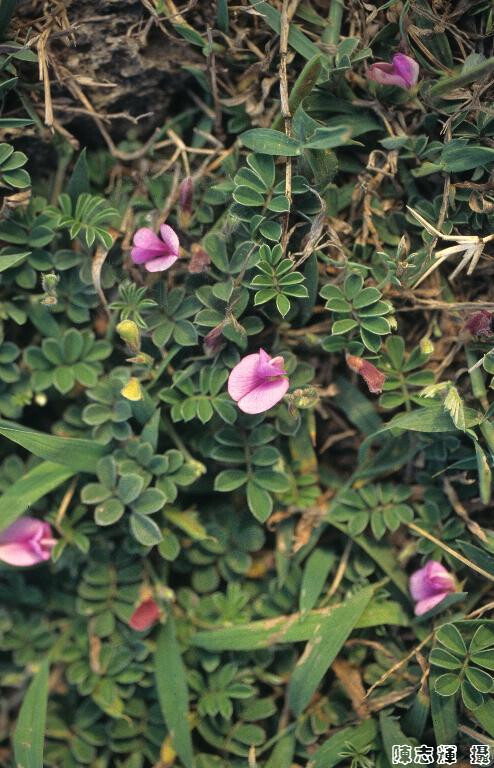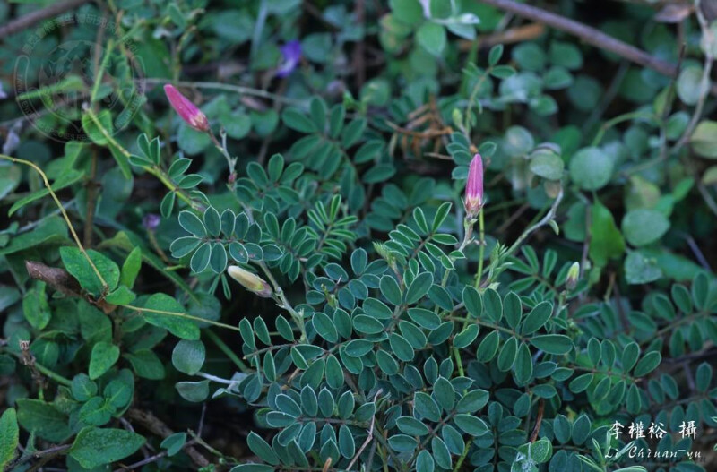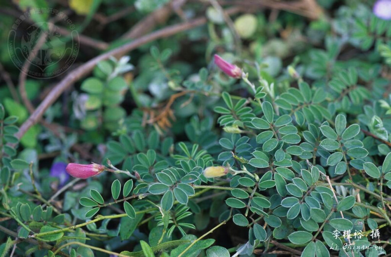 多年生草本,莖枝密被毛。奇數羽狀複葉;小葉11-13,倒卵形,長5-10 mm,兩面被毛,先端截形至凹缺。花紅色。莢果長橢圓形,長2-2.5 cm。 (劉和義、楊遠波、呂勝由、施炳霖 1998)