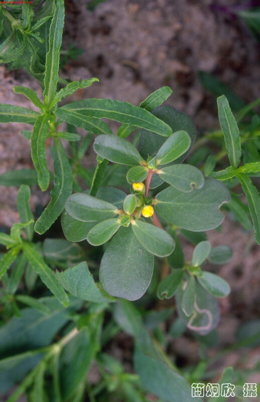 肉質草本,高約50 cm;莖多分枝,常匍匐,光滑。葉螺旋狀著生至近對生,倒卵形至倒披針形,腋處被少數短毛。 (楊遠波、劉和義、呂勝由 1997)