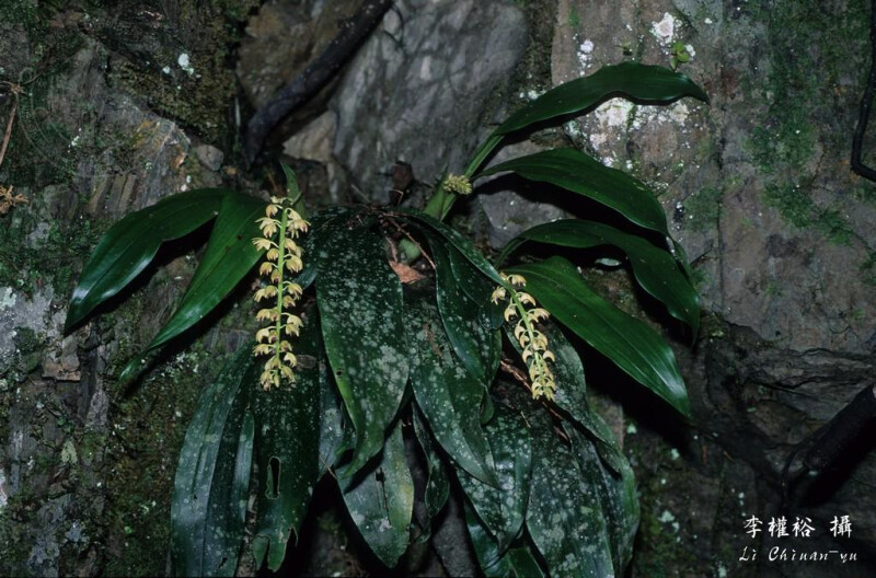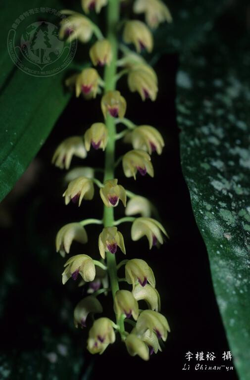 假球莖密生,角柱狀;具2片葉;葉倒披針形,銳頭。花莖側生,自假球莖頂部長出,彎曲,具多花密集而生。花黃綠色。蒴果橢圓體形。 (林讚標 2001)