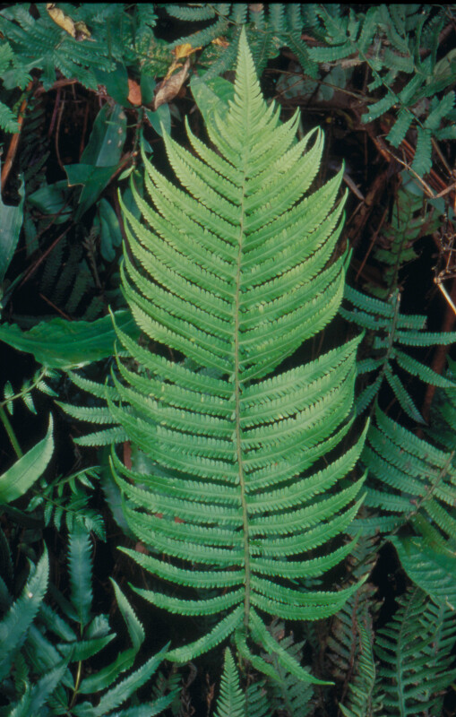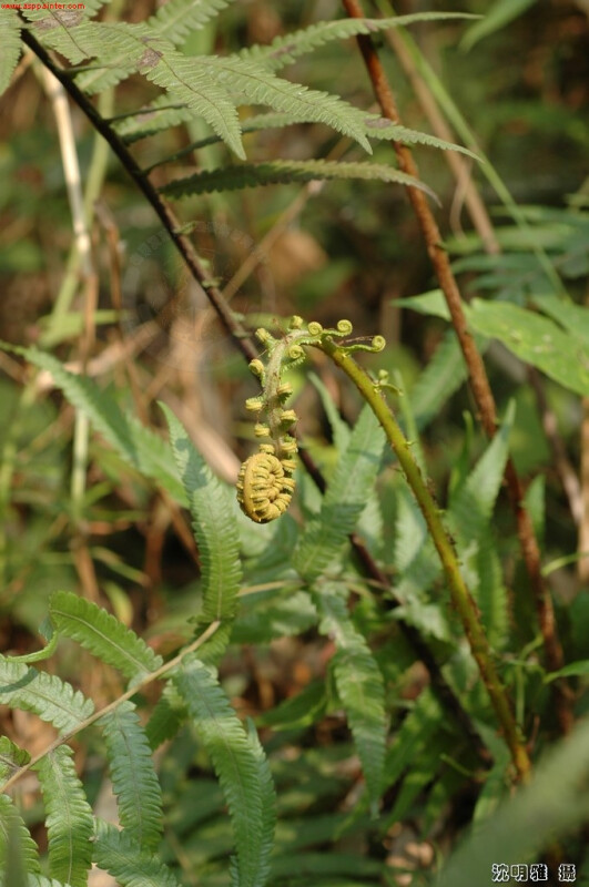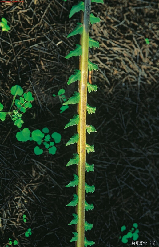 叢生,葉長,可達100cm,下羽片驟縮成鱗片狀,柄短,具小毛蕨脈形,連脈1-3條。 (郭城孟 1997)