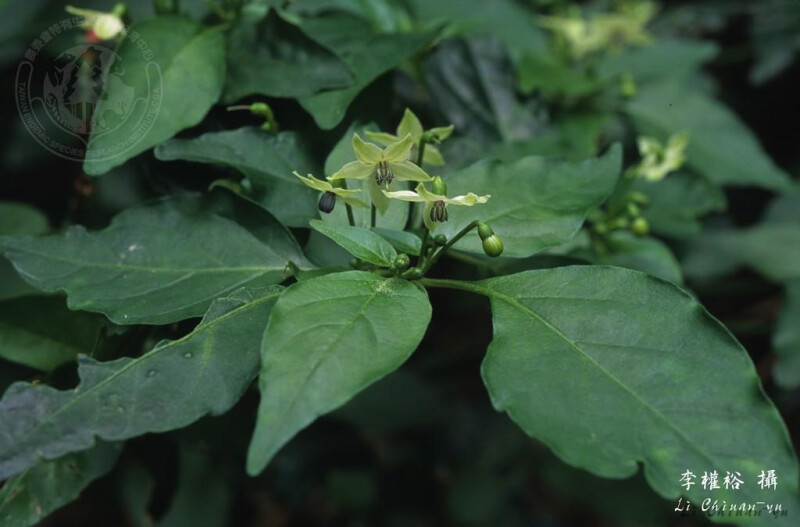 屬特徵:一年生草本至亞灌木。葉單一或成對,通常卵形全緣。花通常單一,腋生;花萼杯狀,先端微齒狀;花冠輪狀,5中裂至深裂;雄蕊近冠筒基部著生,花藥縱裂。漿果。 種特徵: 葉長4-13 cm,寬15-40 mm,變無毛。花萼長2-3 mm;花瓣白色,長10-15 mm;花藥紫色。 (楊遠波、劉和義、施炳霖、呂勝由 1999)