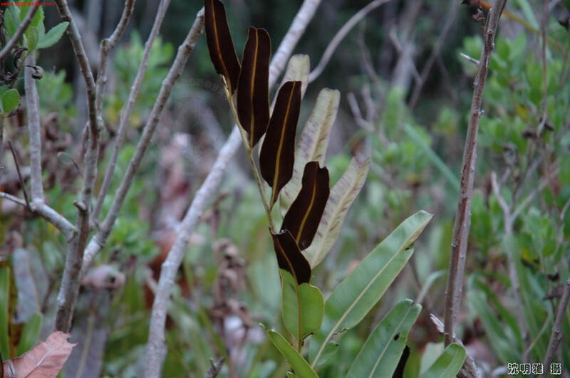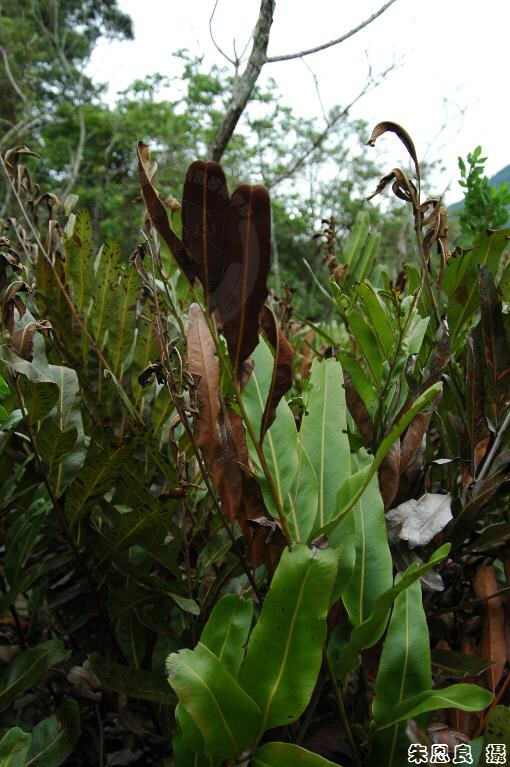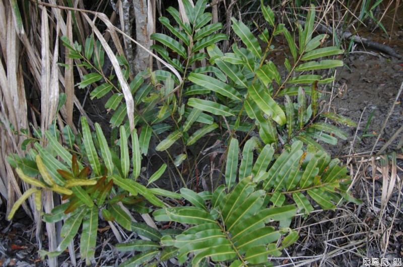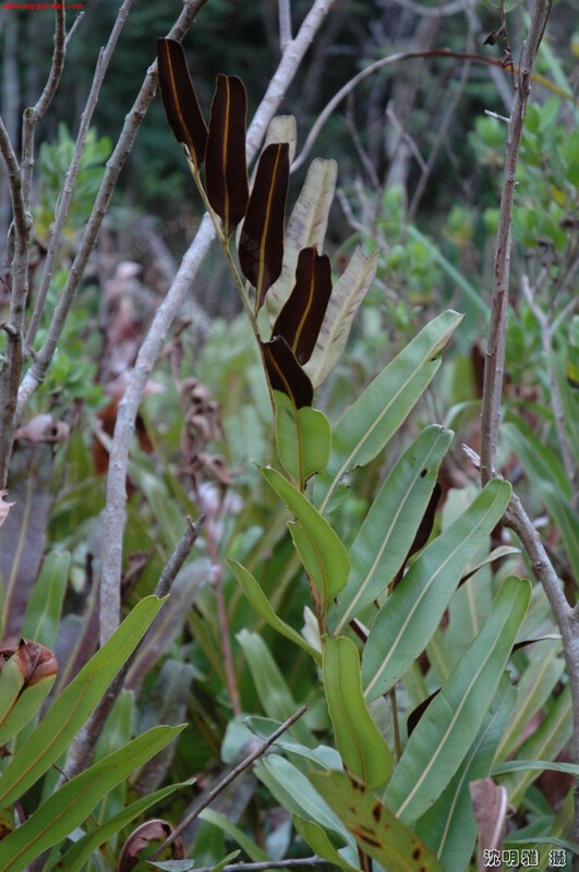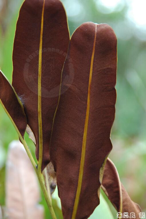 屬特徵-  植株叢生,根肥厚。羽狀複葉,厚革質,網脈,網眼中無游離小脈。孢子囊全面著生。 種特徵- 叢生,根肥厚。一回羽狀複葉,厚革質,網脈,網眼中無游離小脈。孢子囊全面著生,植株可達2m高。 (郭城孟 1997)