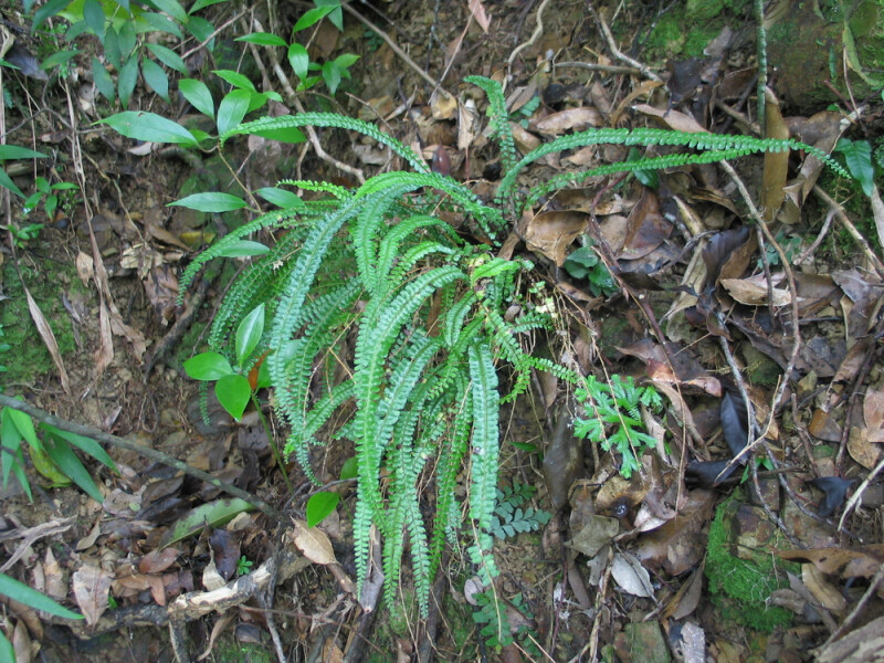 羽片三角形,不具中肋,葉細長線形,一回羽狀複葉,叢生,孢子囊群不連續,游離脈。 (郭城孟 1997)