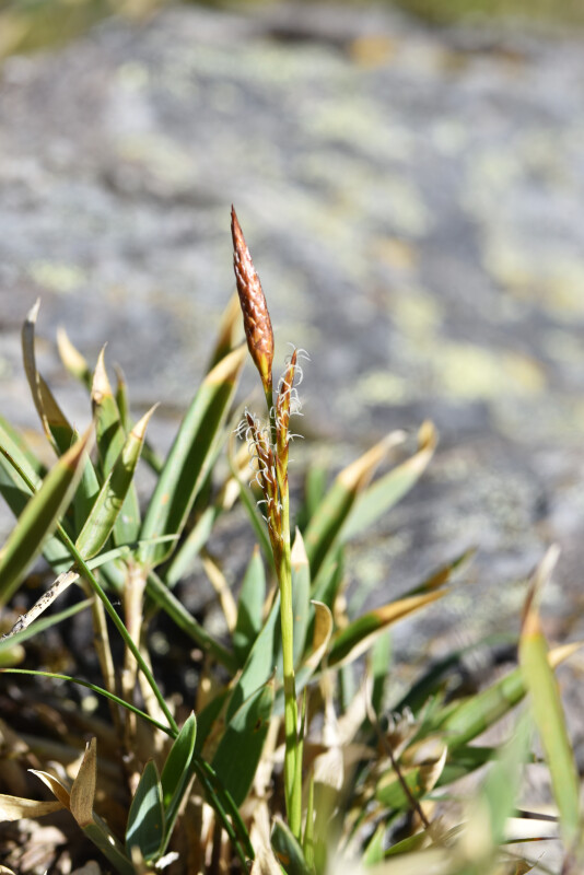 根莖具長走莖。稈叢生,高5-35 cm,橫截面三角形。葉基生,寬1.5-3 mm。花序總狀;葉狀總苞具鞘;頂端雄小穗線形,長1-3 cm;側生小穗雌性或先端具少數雄花,窄圓筒形,長1-3 cm;雌鱗片卵至披針形,頂端不具芒尖;柱頭3。果囊長4-7 mm,被毛,長卵形;瘦果長2-3 mm,長橢圓形,橫截面壓扁狀三角形。 (梁慧舟 2001)